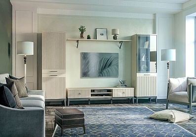 Гостиные гарнитуры под ТВ помогают гармонично вписать в обстановку помещения любую технику, а также организовать бар, гардероб или мини-библиотеку, например. Это могут быть модульные или готовые наборы. Каждый может подобрать подходящий гостиный гарнитур под ТВ в зависимости от размеров помещения, его оформления, финансовых возможностей. Чаще всего классические гарнитуры производятся из ДСП или дерева теплых натуральных цветов. Они могут быть украшены литой фурнитурой или резными элементами.