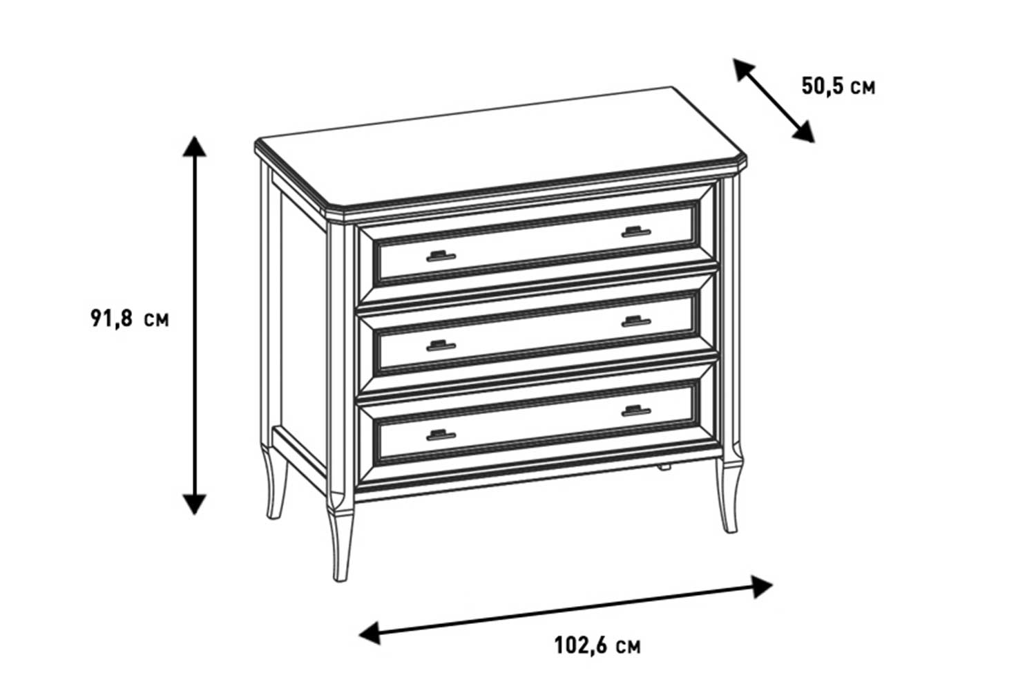 - Комод с тремя выдвижными ящиками;