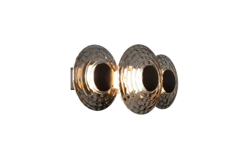 В основе дизайна светильников Claros лежат стеклянные закругленные фактурные плафоны, напоминающие изящные тарелки, между которыми встроены модули LED, создающие мягкое и комфортное освещение. Коллекция включает в себя одиночные подвесы, люстры, а также два вида настенных светильников, что позволяет создавать комплексное освещение пространства в едином стиле. Люстры можно легко комбинировать в оригинальные световые композиции, используя универсальные крепления, что дает простор для творческих решений и индивидуального подхода к оформлению интерьера. Металлический каркас черного матового цвета, закругленный фактурный плафон из стекла дымчато-серого цвета, LED-модуль.