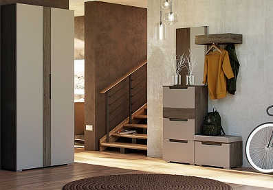 - Комод напольный с четырьмя выдвижными ящиками (каждый ящик с двумя отделениями). В выдвижных ящиках используются направляющие скрытого монтажа со встроенным доводчиком;