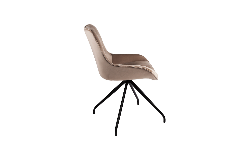 Стул-кресло Сохо с поворотным механизмом прекрасно впишется в любой интерьер и комнату. Такой стул можно использовать как в качестве обеденного стула, так и в виде рабочего кресла к письменному столу.Обивка из велюра в актуальном бежевом оттенке гармонирует с металлическими ножками черного цвета. Такие стулья украсят современные интерьеры, а также пространства в стиле эклектики.